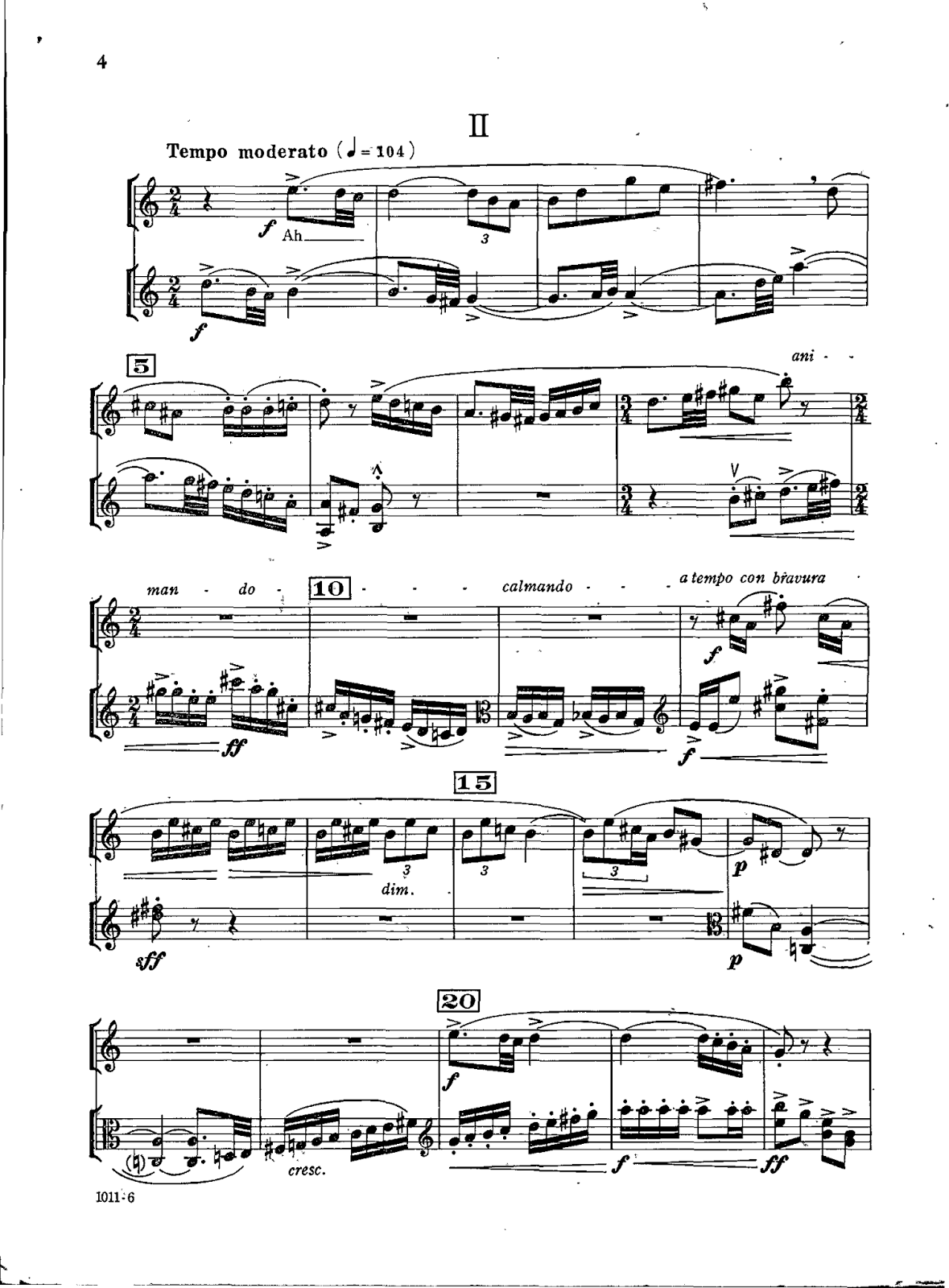 It's debatable whether or not this is more experimental than Mussorgsky's Baba Yaga (though the fact that Mussorgsky's piece was written decades earlier most likely answers that question immediately) but it can be said that Tcherepnin's Baba Yaga is easily the funniest. The tinkling arpeggios plopping on augmented chords is more akin to the improvisatory caprice of Debussy's "Le poisson d'or" from his second book of Images, and the cute ppp ending chord is equally spritely. However, most of the piece is a black gallop, that offset bass pattern bumpity-bumping chromatically contracting and expanding chords in the right hand. The tunes might not be as iconic as Mussorgsky's but Tcherepnin more than makes up for that with his expert piano writing, as detailed and subtle as anything of his day, and believe me that there was a heck of a lot of competition. And why can't there be room for a funny-scary Baba Yaga? The set came from a kid's picture book and the tone is properly accessible throughout the suite, so a witch that's a bit humorous is exactly the kind of thing kids love at Halloween. It'd make a fine encore as well, totaling a mere 1'20'' for a witchy bolt off stage*. It can't really be the encore for this article, though, as I've spent the most amount of time talking about it of all the pieces and even included the sheet music for the benefit of busy work scrolling - perhaps I'm trying to tell you that there's a certain Russian composer that we'll be talking about next week, one whose name rhymes with "pickle-eye"...**